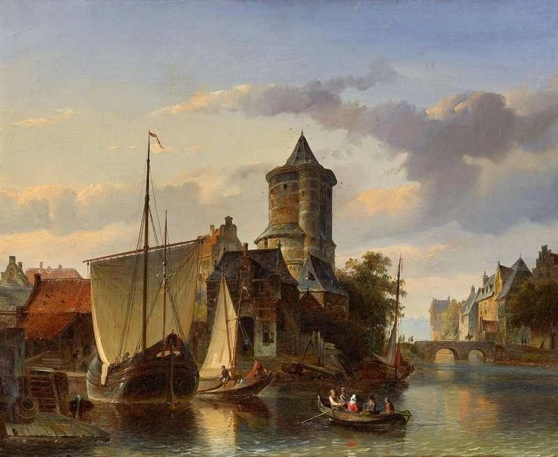 By the 1840s, Springer had established himself as a painter of architectural scenes, focusing on the picturesque towns and cities of the Netherlands. His early works were influenced by the Romantic movement, characterized by their idealized depictions of urban life and a warm, harmonious color palette.