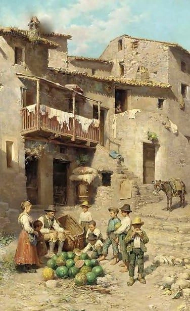 Francesco Bergamini werd geboren in 1815 in Milaan, Italië, waar hij al vroeg interesse kreeg in kunst, geïnspireerd door het rijke artistieke erfgoed van Italië. Hij volgde een formele opleiding in schilderen en verdiepte zich snel in de Milanese kunstscene, die een opleving van interesse in realisme en de weergave van het dagelijks leven doormaakte. Bergamini werd bekend om zijn vermogen om scènes uit het Italiaanse platteland en de stad vast te leggen met een authenticiteit die weerklank vond bij het publiek.