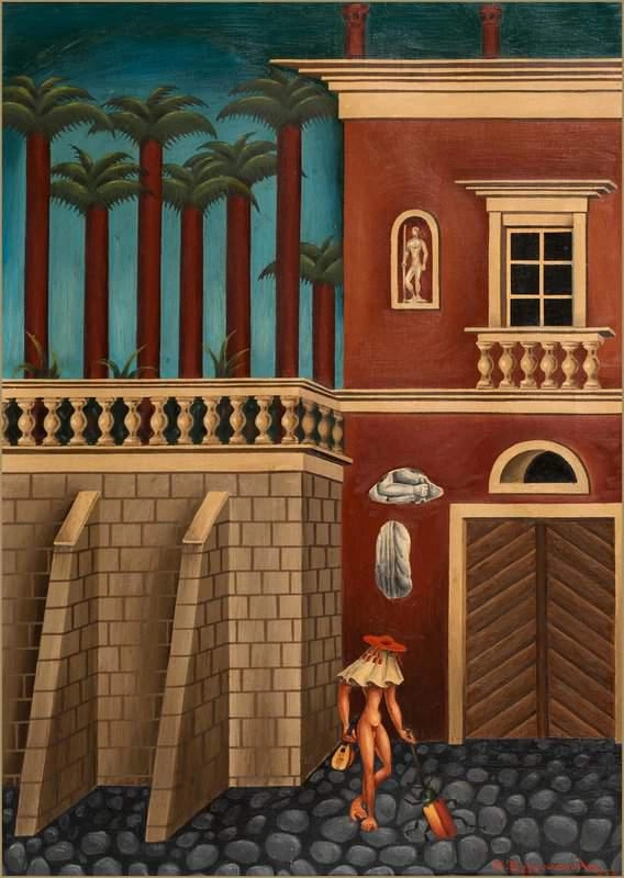 Nikos Engonopoulos, født 21. oktober 1907 i Athen, Hellas, var en berømt maler, poet og en av de ledende skikkelsene innen gresk surrealisme. Engonopoulos vokste opp i en epoke preget av kulturell transformasjon, og utforsket sin kunstneriske visjon på bakgrunn av moderne gresk identitet. Hans lidenskap for kunst førte til at han studerte ved Athens School of Fine Arts under Konstantinos Parthenis og fordypet seg i gresk historie, mytologi og den europeiske surrealistiske bevegelsen, og formet hans unike stemme.